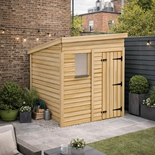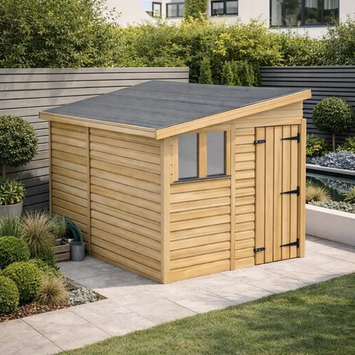 Shop pent sheds with a modern sloping roof, ideal for stylish, compact garden storage that fits tight spaces and stays weather-resistant.